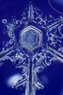 Im folgenden Bild sehen wir einen perfekten Eiskristall, in dessen Mitte wir das Sechseck gut erkennen können.